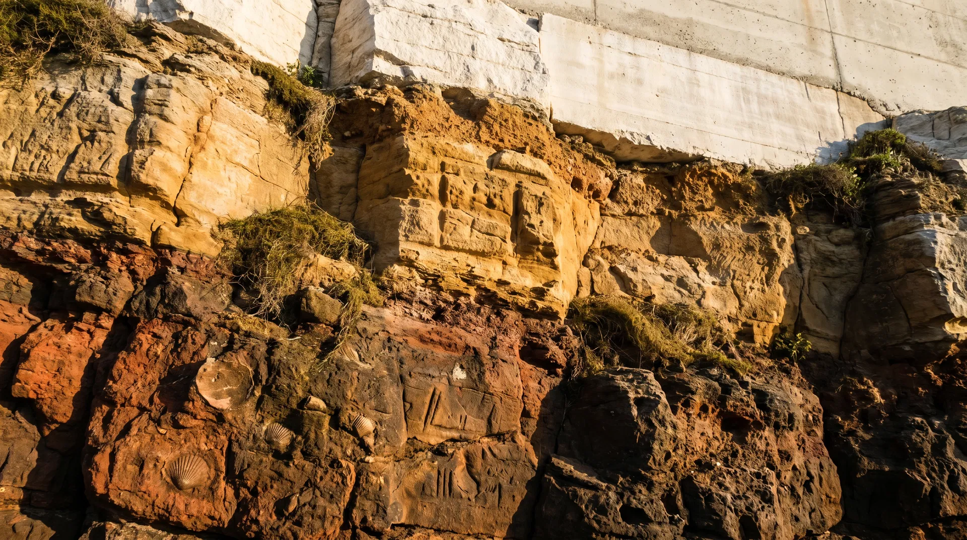 Archaeological layering as visual metaphor — Each stratum represents an era of building, with JSSR as the newest layer